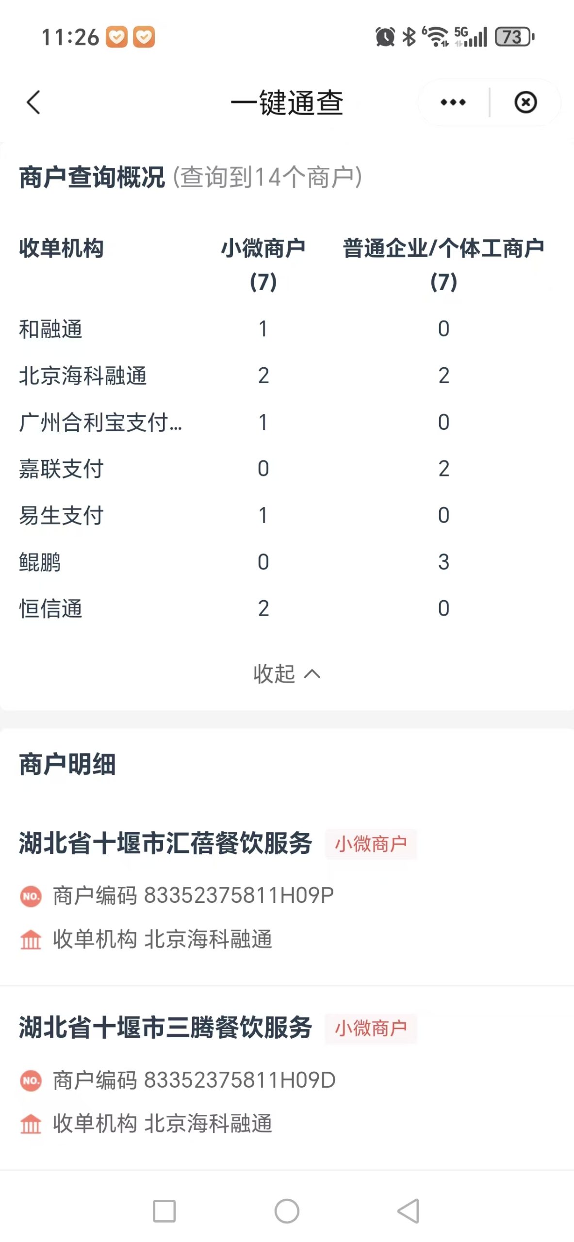 不过大家不要慌,这两天据多位代理商实测,目前有一套比较好用的批量注销方法。那就是通过云闪付里面的“一键通查”功能查询到商户,然后打各家支付公司的400客服,将商户名称以及商户编号报给客服人员注销,除个别支付公司不行外,其他都已经支持了。可能个别支付公司客服会设置障碍,比如需要你在某个时间结点之前确认。那你就直接跟客户说无需确认,直接注销就好。一般只需要1个工作日,都能够注销完成。客服如果跟你帅无赖,不给你注销,那你就投诉到监管部门。现在这个风口浪尖,支付公司都怕投诉。已上方法已经多个代理商实测过了,非常好用!大家赶紧去试一试,反馈下结果,以免晚了个别支付公司又设置障碍。