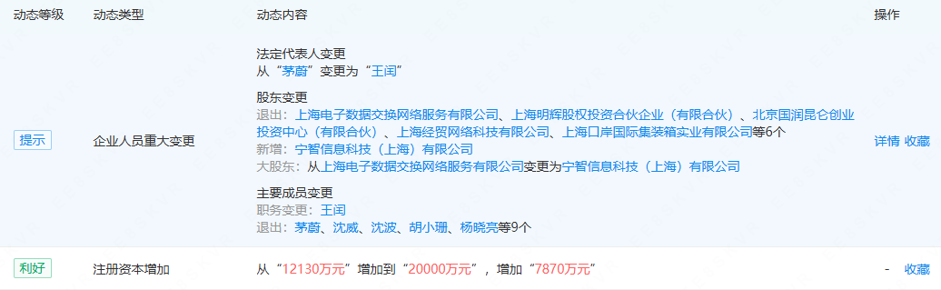 企查查信息显示,东方电子支付有限公司完成了一系列关键变更:法人代表由茅蔚变更为王闰,注册资本由1.213亿元大幅增至2亿元,公司性质也变为有限责任公司(非自然人投资或者控股的法人独资企业)。